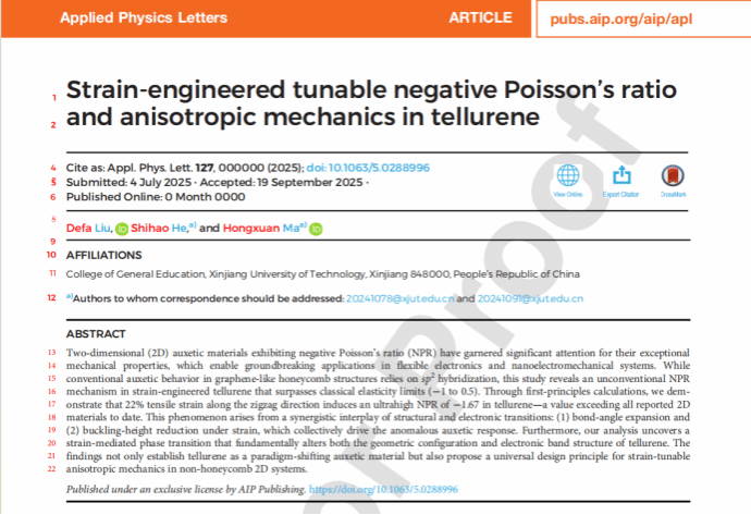 近日,新疆工业学院通识学院物理教研部在二维材料力学领域取得重要进展。相关研究成果以《Strain-engine...