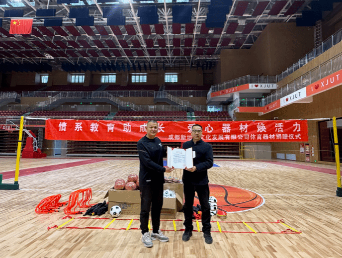 两家爱心企业:成都新运动文化发展有限公司与四川明呈汇能能源服务有限公司为我校捐赠了一批教学用体育器材。捐赠仪式上,于淘副处长首先致辞,强调体育是“德智体美劳”全面发展的重要组成部分,爱心器材的到来为学校体育教学工作注入新动能。邓东元教授在讲话中指出,南疆高校体育教育需结合地域民族特色,既要筑牢学生身体素质根基,也要通过体育活动传承文化、凝聚力量。随后,来自西南财经大学的援建教师何亮同志代表四川成都的两家爱心企业分享捐赠初心,学校为其颁发捐赠证书,全体人员合影留念。