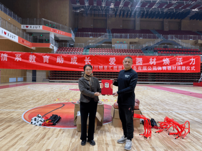 2025年11月20日上午,“情系教育助成长,爱心器材焕活力”体育器材捐赠仪式在新疆工业学院体育馆顺利举行。教务处副处长于淘同志、通识学院副院长邓东元教授及体育教研部全体教师参与活动,本次活动由体育教研部副主任张妍主持。